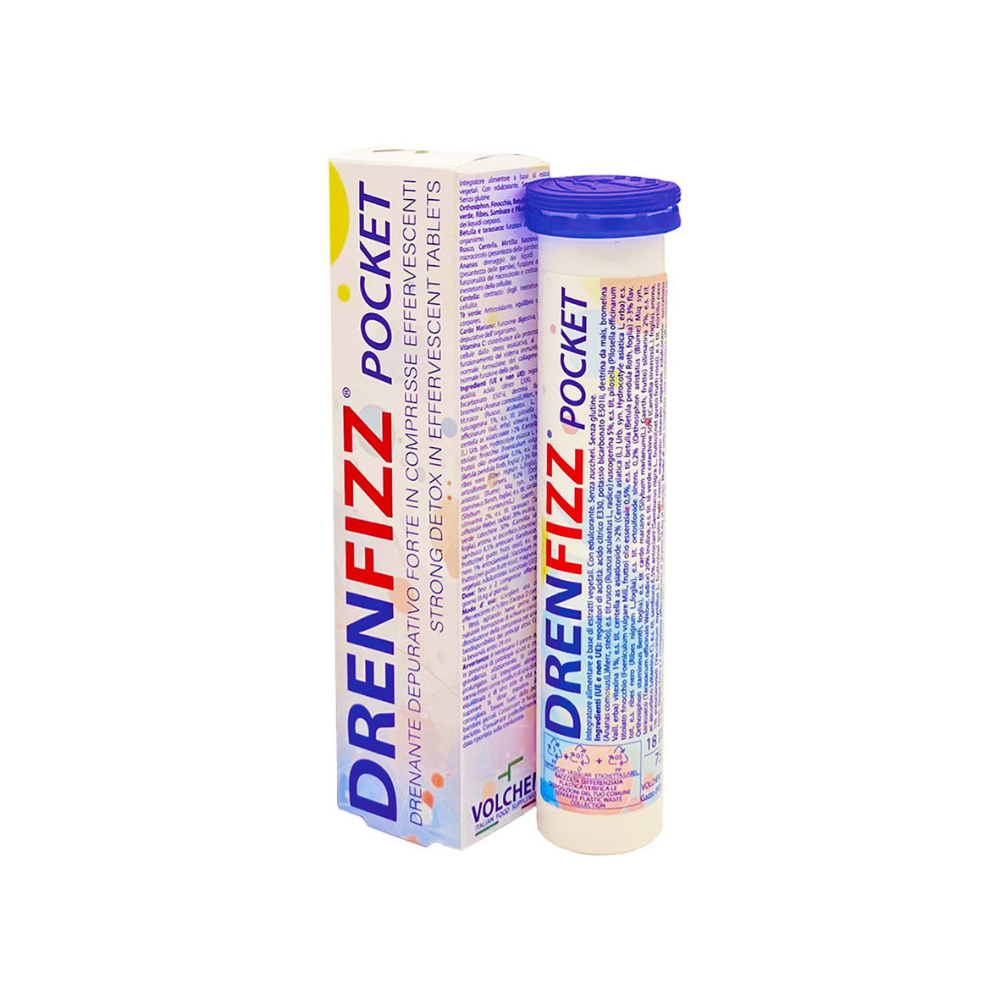 DRENFIZZ è l’integratore alimentare Volchem® pensato per favorire il drenaggio dei liquidi corporei, sostenere le funzioni depurative dell’organismo e migliorare la funzionalità del microcircolo. Ideale per chi vuole contrastare gonfiore e ritenzione idrica, DRENFIZZ® è senza zucchero, glutine e lattosio, con edulcorante naturale. Adatto a vegani e vegetariani.
